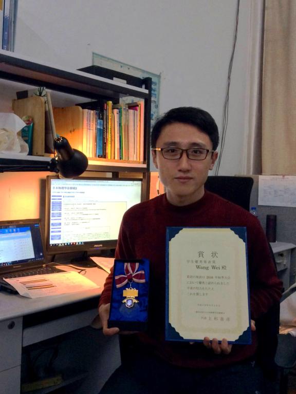 近日,在日本物理学会(JPS)2016年秋季大会中,我校乐鱼app官网等离子体专业博士生王玮获得了本年度日本物理学会优秀发表赏(奖)。日本物理学会创建于1877年,130年间共涌现出11位诺贝尔物理学奖获得者。优秀发表赏(奖)项旨在表彰于物理学各个领域取得突出进展的在读博士研究生,每个领域最终仅遴选出4人。本届大会共有超过5000名参加者,会议报告及展板总计3600余件。评奖过程首先由会议期间通过不记名投票对1000余场报告进行初选,并最终送于会议组委会通过讨论产生。王玮同学还被邀请参加了获奖后由日本物理学会主办的恳谈会(宴会活动)。本次王玮获奖是该奖项在近三年内唯一一次由中国人获得。