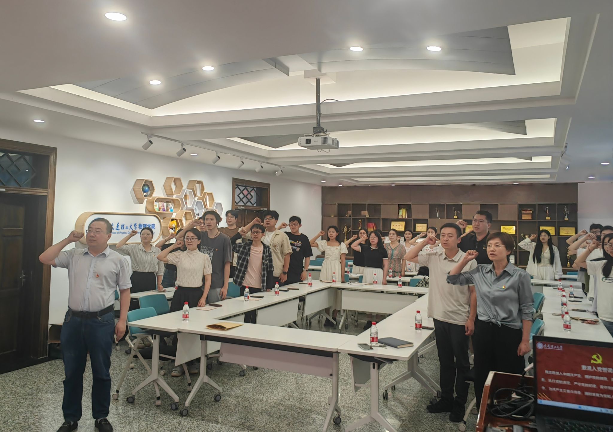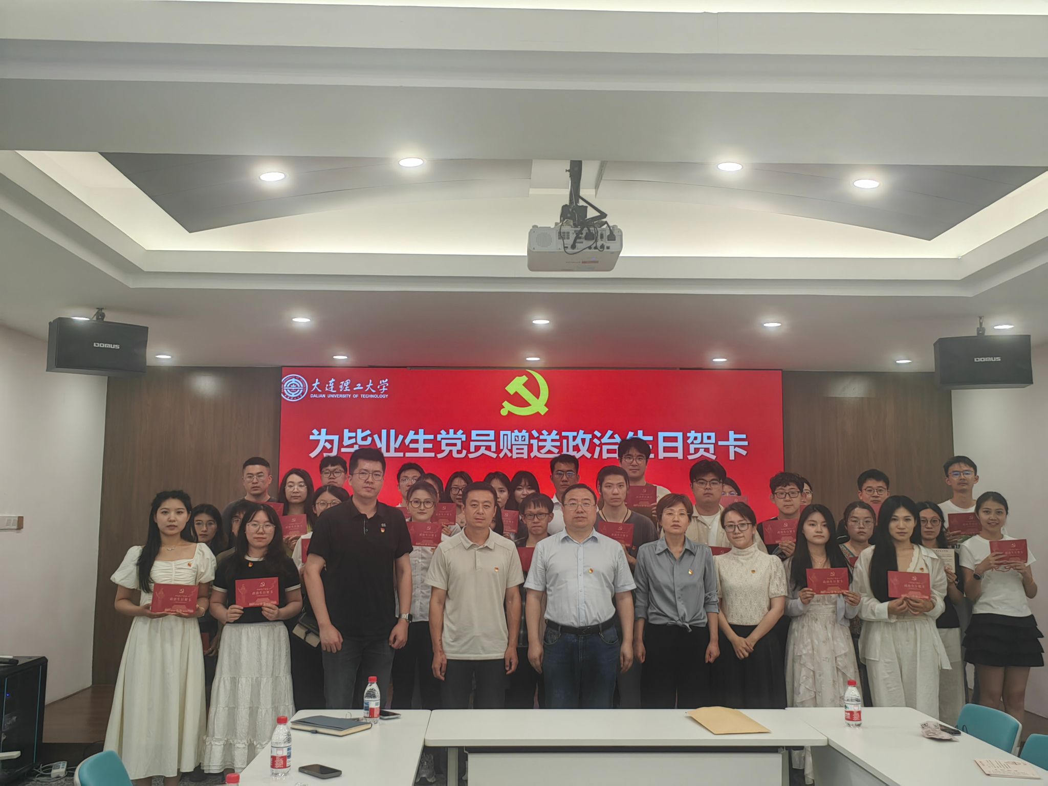 在集体政治生日环节,学院党委为每位毕业生党员颁发了精心制作的“政治生日贺卡”,贺卡上印着入党誓词与毕业寄语,承载着党组织的深切关怀与殷切期许。在党委书记于长水的带领下,全体毕业生党员重温入党誓词。铿锵有力的誓言,让党员们回溯入党初心,强化身份意识,进一步坚定为共产主义奋斗终身的决心。大家纷纷表示,会时刻鞭策自己牢记党员身份,以实际行动为党旗增光添彩。