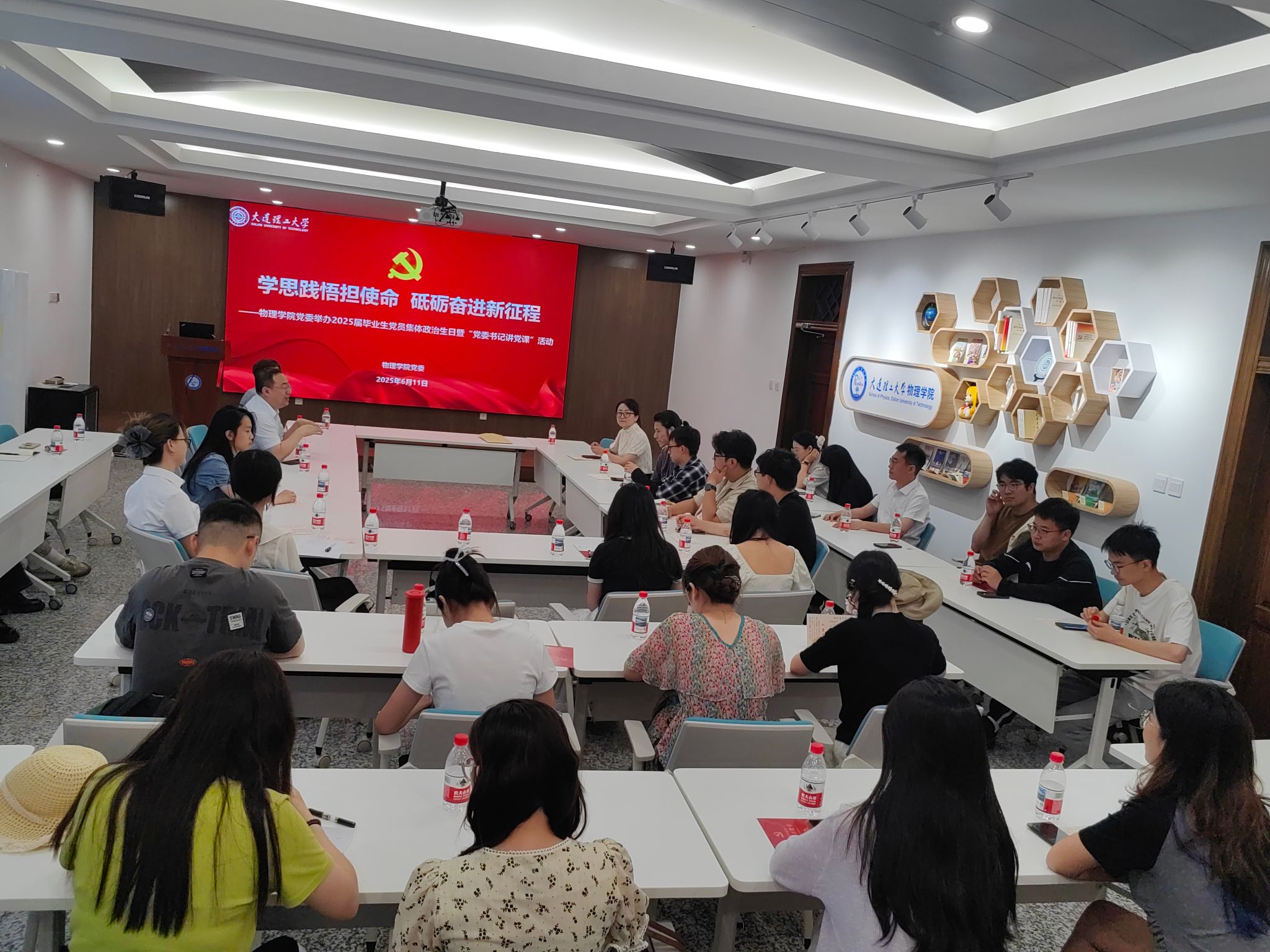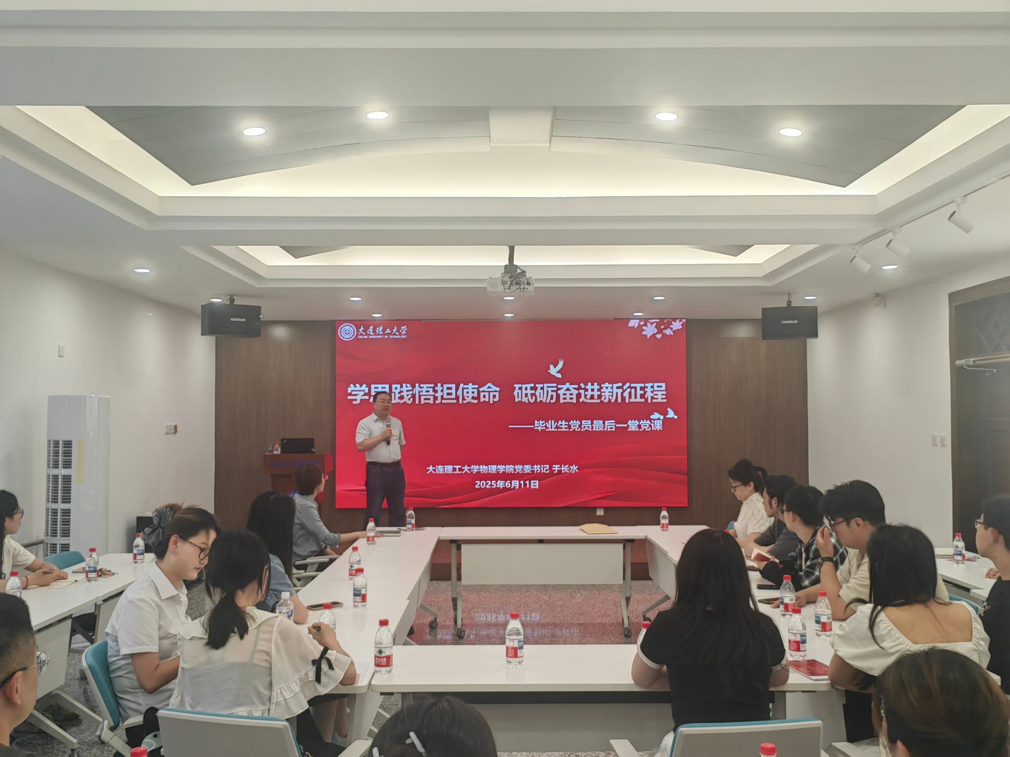 为切实加强毕业生党员教育管理,引导其深学笃行习近平新时代中国特色社会主义思想,坚定理想信念,担当时代使命,乐鱼app官网党委于2025年6月11日下午在物理楼322室举办2025届毕业生党员集体政治生日暨“党委书记讲党课”活动。活动由学院党委副书记兼纪委书记于艳敏同志主持,学院党委书记于长水、党委副书记兼副院长周福良、党委组织员纪丹红、学生工作办公室主任张弛及2025届毕业生党员参会。