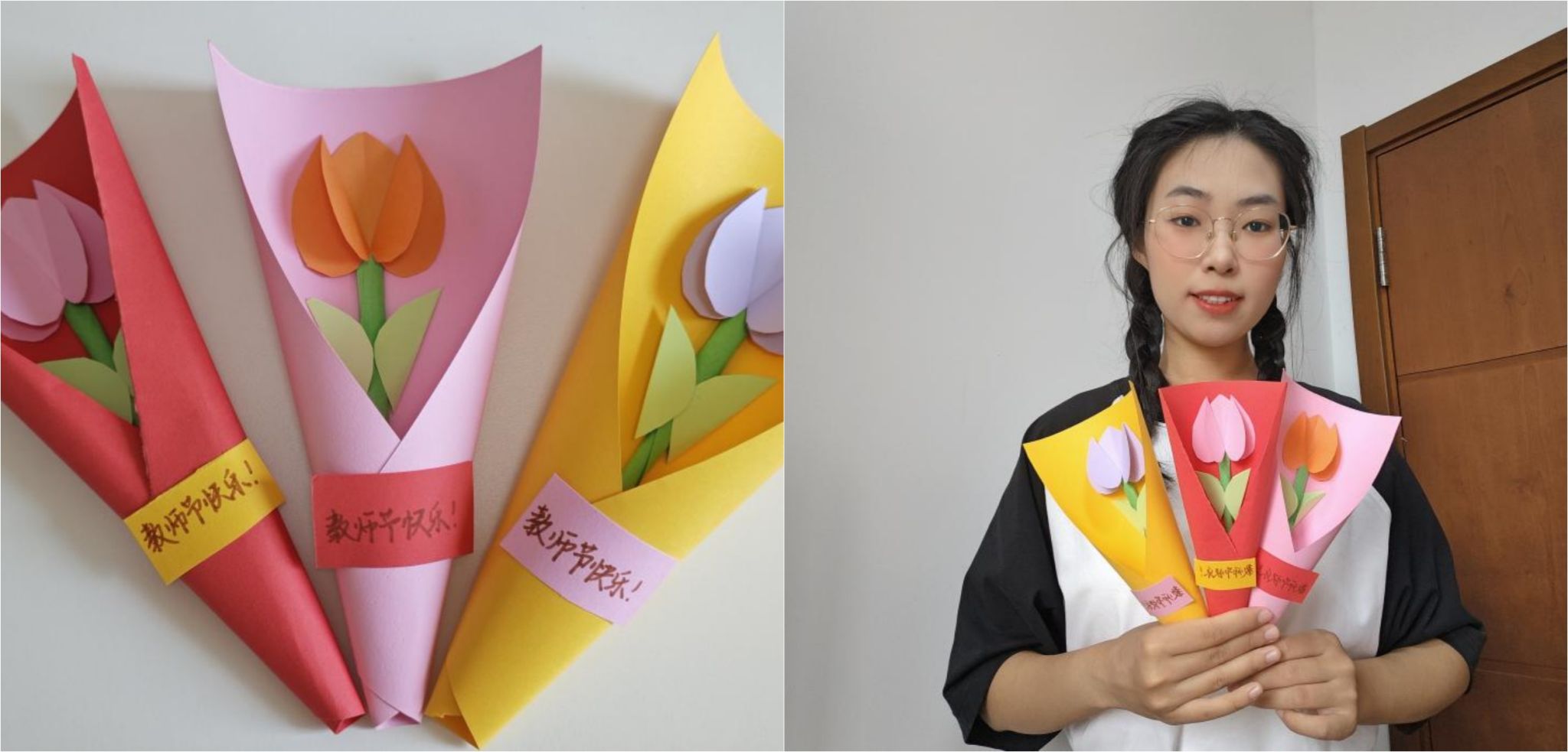 聂文慧同学用三支手工制作的不同颜色的郁金香,分别表达了老师温暖细腻的关爱、学术路上的智慧与启迪、育人途中的活力与奉献,通过亲手制作的永不凋谢的郁金香,表达对学院全体教师最真挚、纯洁的感谢,体现清廉温馨的感恩新风。