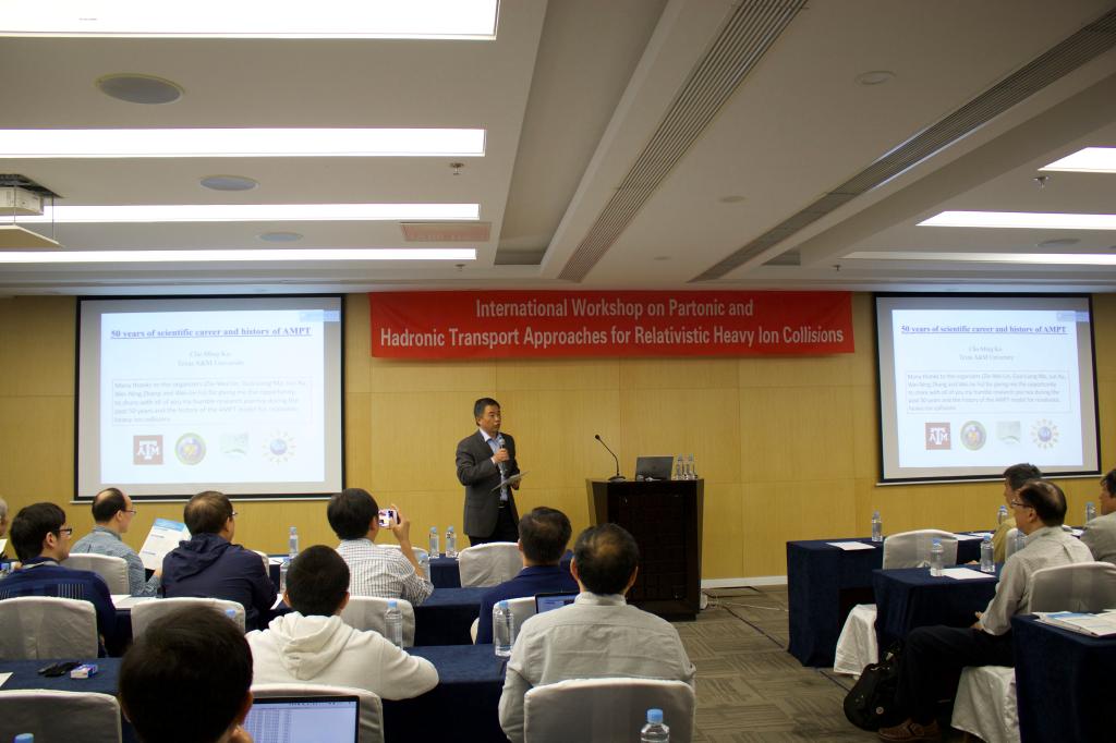 在会议中,大家就目前中高能核物理学科中的重点和热点问题展开激烈的讨论,其中包括:多相输运模型(AMPT)及其在相对论重离子碰撞中的应用和未来发展、QCD相变与临界点的探针、重离子碰撞输运理论等相关问题。其间,本校相关方向的研究生和本科生也都积极参与其中。在互相切磋交流中,学术得以发展和进步。