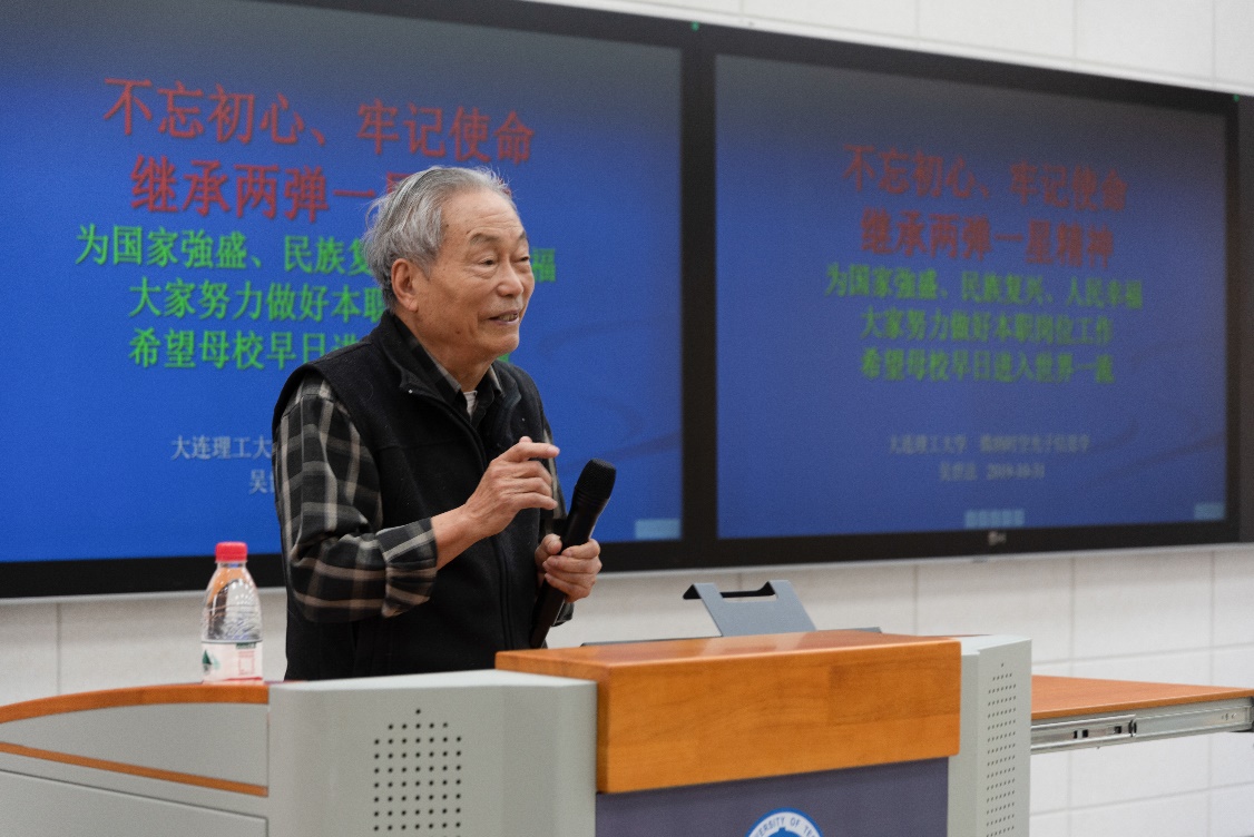 为进一步落实学校及学院“不忘初心、牢记使命”主题教育方案,丰富学习形式,积极开展革命传统教育、先进典型教育,突出“以身边榜样教育身边党员、以身边事感染身边人”,乐鱼app官网邀请到我国第一颗原子弹研制工作主要参加者、学院退休教师吴世法教授,于10月31日下午在材料馆201党建智慧教室开展《继承“两弹一星”精神 不忘初心、牢记使命》集中党课活动。