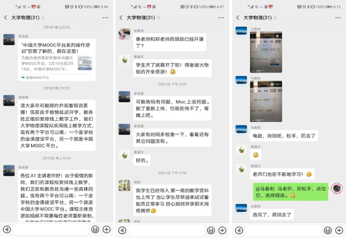 教学团队在微信群中讨论在线教学事宜