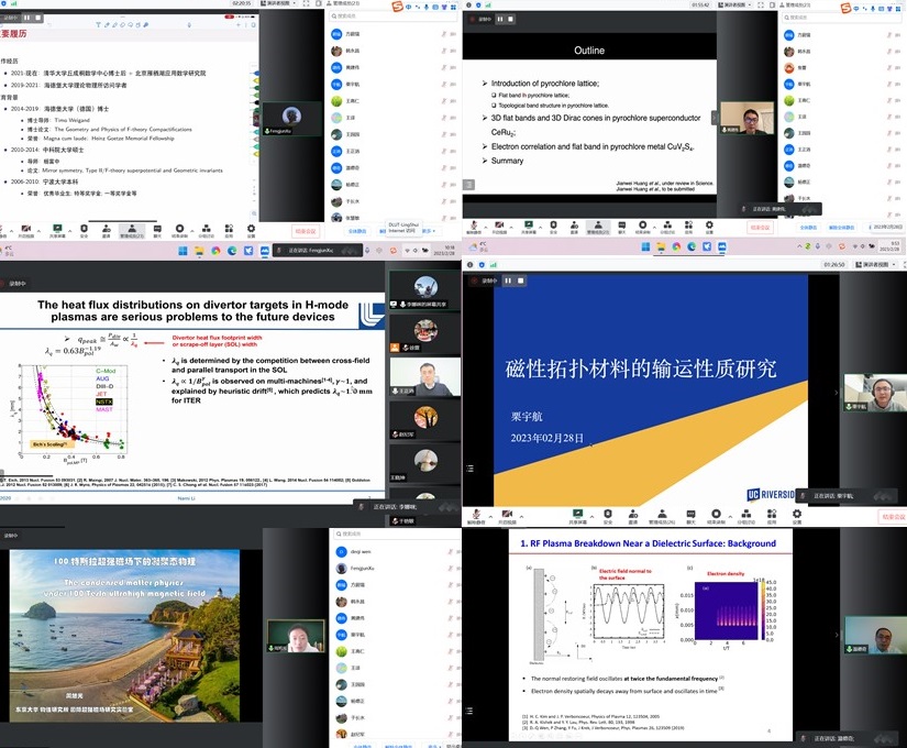 6位青年学者围绕各自的研究方向和学术成果,针对物理学科前沿和交叉研究方向,做了精彩的专题学术报告,全院师生参与了学术交流和讨论。最后,报告人与学院领导及学科带头人就人才引进政策、未来岗位规划等问题进行了交流。
