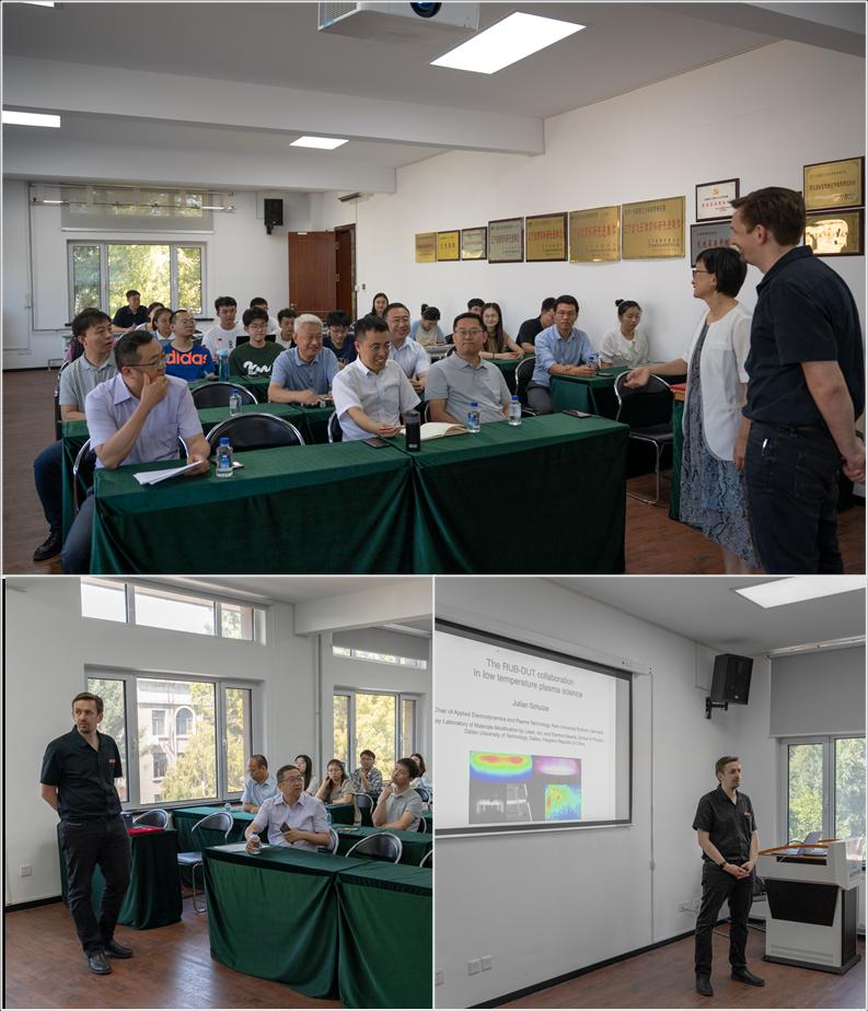 仪式过后,Julian Schulze教授面向与会师生作题为“The RUB-DUT Collaboration in Low Temperature Plasma Science”的学术讲座,在介绍波鸿鲁尔大学Plasma Technology Group的基础上,重点针对近期的研究合作进行详细介绍:近年来,双方在容性耦合射频等离子体电子加热机制、调控等离子体的先进方法、磁化容性耦合等离子体放电机理、大气压介质阻挡放电机理等方面开展密切合作,形成了一系列富有意义的科研成果。