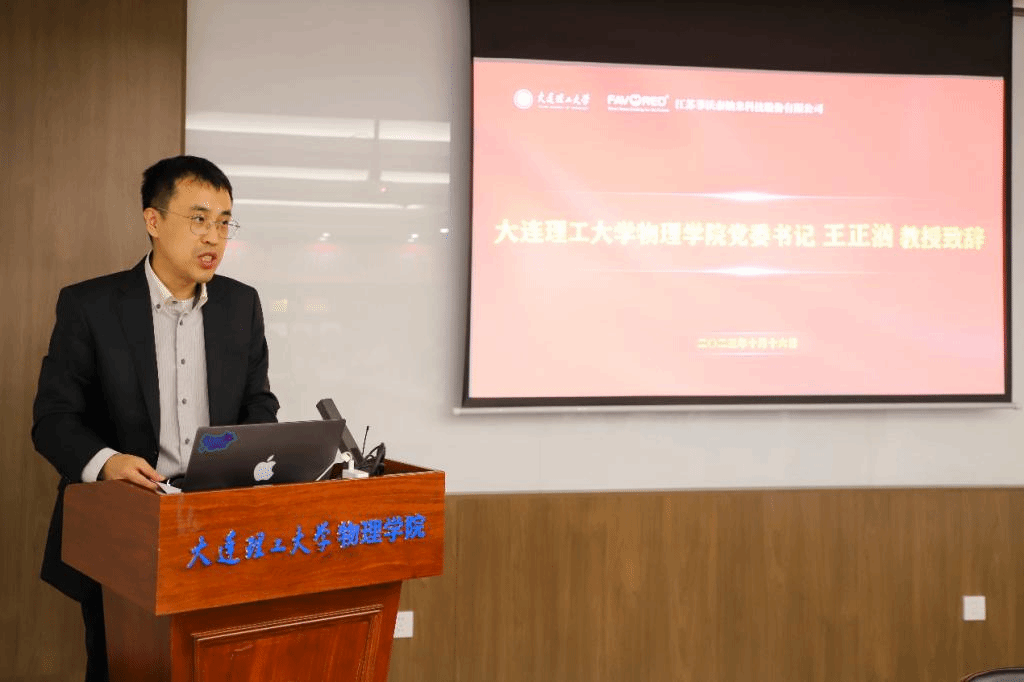 朱方伟代表学校向菲沃泰及其董事长宗坚的到来致以热烈的欢迎和诚挚的感谢。朱方伟表示,菲沃泰出资设立“菲沃泰奖学金”是对学校育人事业的肯定和我校教育事业发展的信任和支持,更是优秀企业诠释价值观、勇担社会责任的体现。学校也定将贯彻党的教育方针,以优异的办学成绩回应社会的关切与期待。鼓励同学们在大工的沃土上明方向、练本领,以积极的态度和不懈的奋斗来回报祖国、社会和学校。