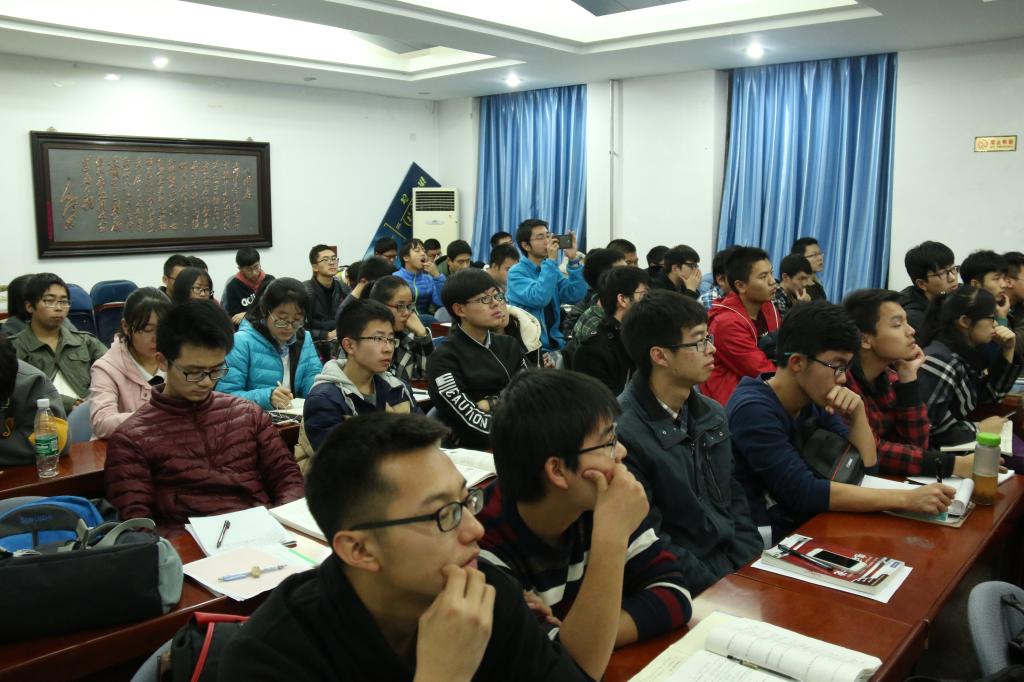 两场讲座结束之后,是近一个小时时间的互动交流环节。中科院物理所研究生部副部长王皖燕老师在环节中针对同学们关于中科院物理所研究生招生、本科生实习实践等问题做出详尽解答,穿插着对物理所的全面介绍,让同学们对物理所的认识达到一个新的深度;部分同学与两位讲座老师交流科研体会与心得,得到了两位老师各自角度的恳切建议。交流环节气氛轻松而热烈,许多学生在会后继续与三位老师深入交流。