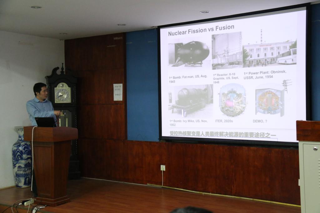 第二场讲座《磁约束等离子体中的大规模数值模拟》由中科院物理所博士生导师,国家自然科学基金、科技部ITER计划专项、中科院前沿项目等课题组组长,中科院百人计划,中国科技大学兼职博导——张文禄研究员主讲。张老师的讲座循序渐进、针对性强,立足于能源之于人类发展的重要意义,结合着聚变研究的历史进程,阐述了聚变研究的重点和难点,并进一步就“磁约束核聚变大规模数值模拟”这一课题,为观众们讲解其研究意义、研究环境、国内外研究现状以及课题组相关的研究内容和前景目标。