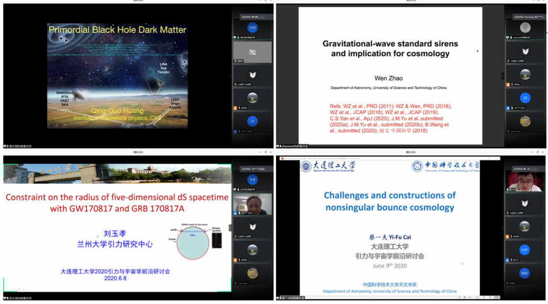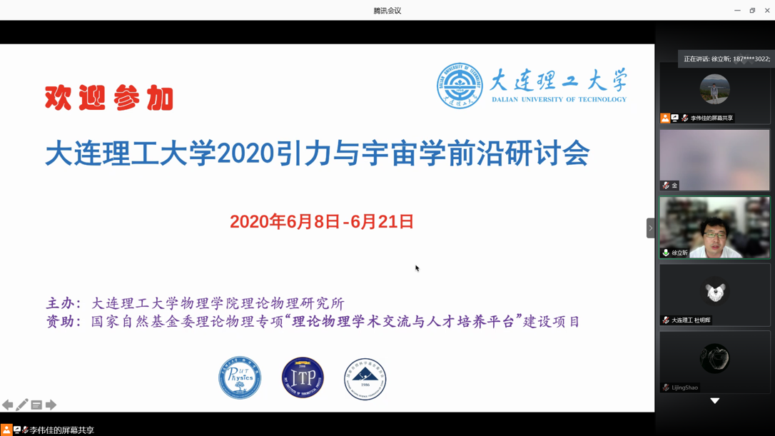 2020年6月8日-6月21日,由乐鱼app官网理论物理研究所主办的“大连理工大学2020引力与宇宙学前沿研讨会”成功召开。本次会议受国家自然基金委理论物理专项“理论物理学术交流与人才培养平台建设项目”资助,组织者为大连理工大学徐立昕教授和李伟佳副教授。会议采用了“腾讯会议”进行线上学术交流,共有中科院及海内外50余所兄弟院校和科研院所的100余名引力与相对论领域的专家报名参会(峰值在线人数为160余人)。