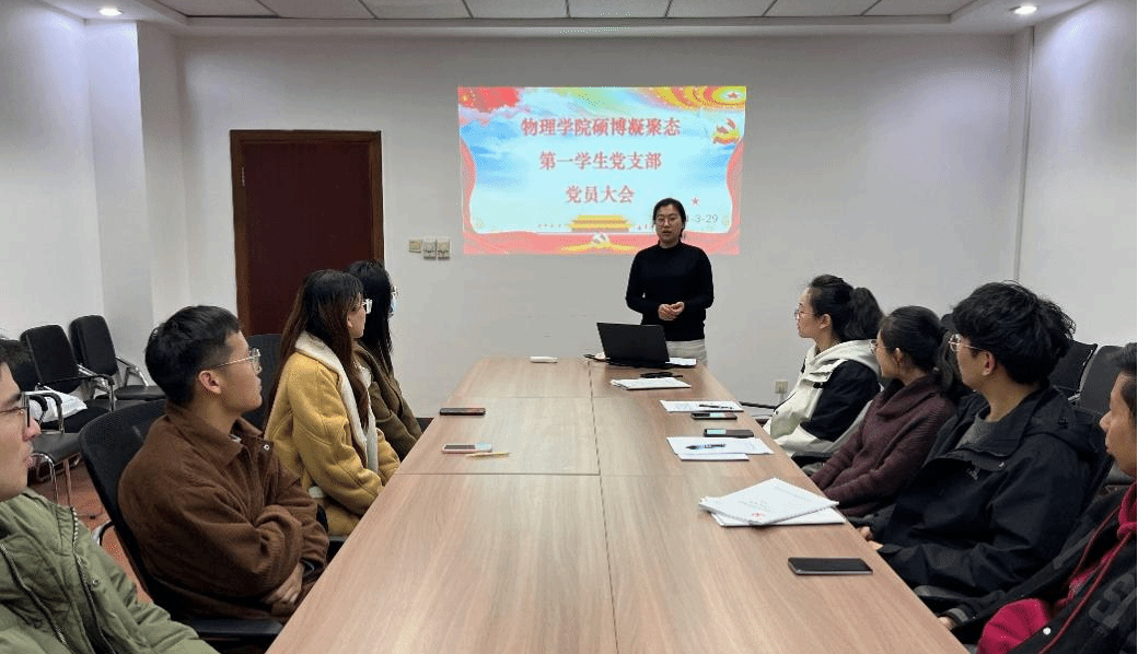 团结一心再进发,昂首阔步向未来。为深入学习领会全国两会的精神,切实将思想和行动统一到党中央的指示要求上来,硕博凝聚态第一学生党支部于2024年3月29日晚七点在科技园C座510会议室开展学习全国两会精神暨支部换届大会。会议由支部书记王瑞腾同志主持,支部全体党员参加。