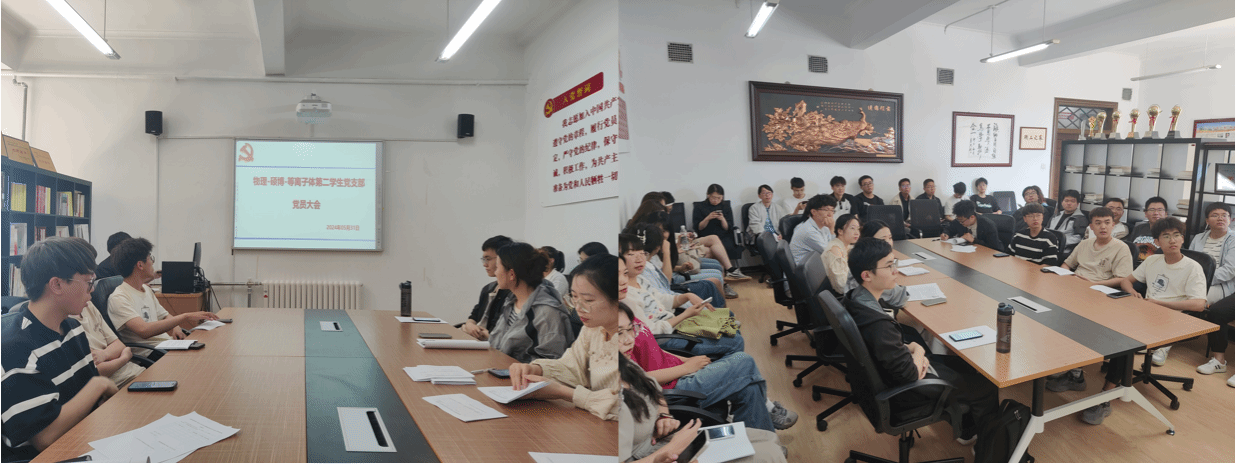 为进一步加强基层组织建设,加强支部全体党员的党性修养,全面落实党纪学习教育任务要求,乐鱼app官网硕博等离子体第二学生党支部于2024年5月31日下午3点在物理系楼422室召开党员大会暨“学纪·知纪·明纪·守纪”主题党日活动,会议由党支部书记张宇同志主持,支部全体党员参加。