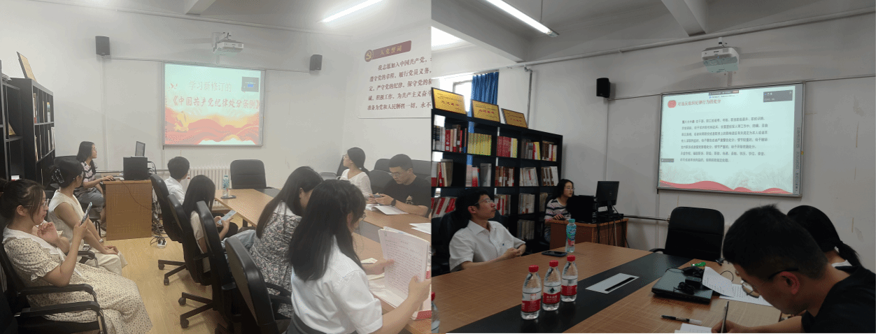 会议第一项,由金思潼同志带领大家学习新修订的《中国共产党纪律处分条例》(以下简称《条例》),重点对违反政治纪律、组织纪律、工作纪律和生活纪律行为的处分条例进行讲解。《条例》将习近平总书记关于全面加强党的纪律建设重要论述转化为纪律要求,用贯穿党的创新理论的立场观点方法引领纪律建设工作,有利于为新征程上一刻不停推进全面从严治党提供坚强纪律保障。通过对新修订的《条例》的学习,进一步提醒同志们要时刻从内心深处敬畏党纪国法,打牢思想基础,筑牢思想防线。