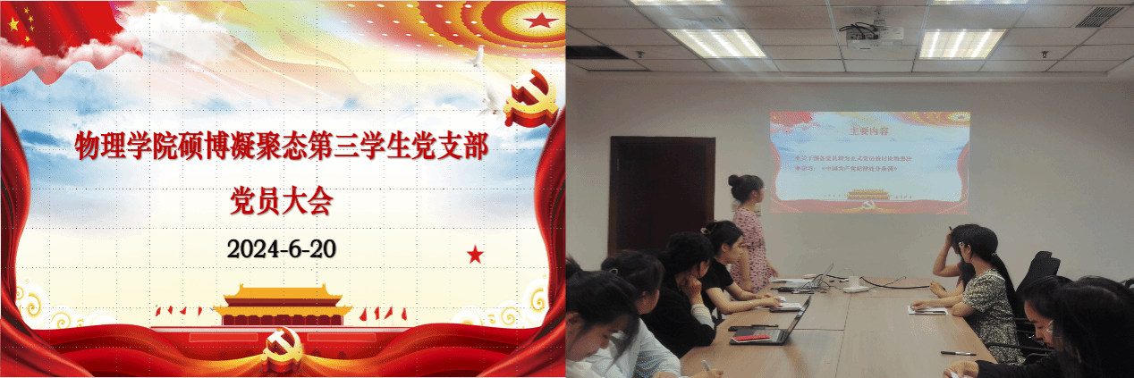 为全面落实学校和学院党委对开展党纪学习教育的部署,2024年6月20日,乐鱼app官网硕博凝聚态第三学生党支部在科技园写字楼C座510会议室召开党员大会暨“学条例,正身行”主题党日活动,本次活动由党支部书记赵博同志主持,支部全体党员积极参与。
