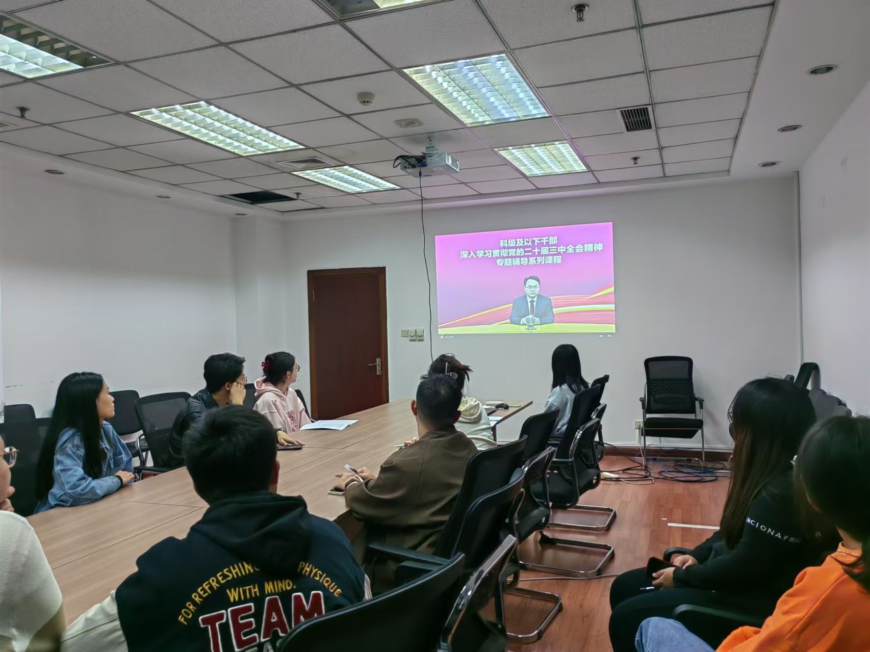 会议第三项在宫丽悦同志的带领下支部成员共同学习关于“深入学习贯彻习近平总书记关于全面深化改革的一系列新思想、新观点、新论断和党的二十届三中全会精神”, 并结合实际开展研讨交流。支部成员认真观看中央党校提供的优质课程资源,以习近平新时代中国特色社会主义思想为指导,深入学习习近平总书记在党的二十届三中全会上的重要讲话精神,深刻领会和把握进一步全面深化改革的主题、重大原则、重大举措、根本保证,深刻领悟“两个确立”的决定性意义,增强“四个意识”、坚定“四个自信”、做到“两个维护”。 通过学习加强了对党员关于党的理论教育和党性教育,党员能够更加系统地掌握习近平新时代中国特色社会主义思想的科学体系,号召全体党员着力把进一步全面深化改革的战略部署转化为推进中国式现代化的强大力量,为全面建成社会主义现代化强国、实现第二个百年奋斗目标,以中国式现代化全面推进中华民族伟大复兴而努力奋斗。
