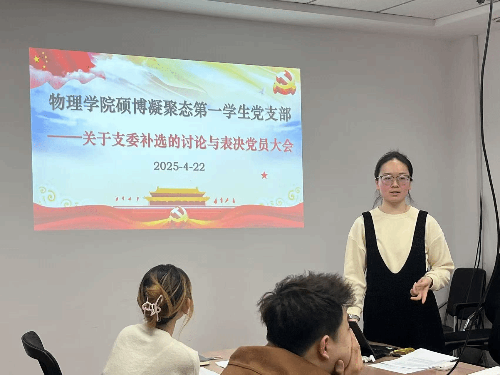 为贯彻落实中央八项规定精神,强化党员政治素养、夯实党组织建设,2025年4月22日,乐鱼app官网硕博凝聚态第一学生党支部在科技园C座510会议室召开党员大会暨“深入贯彻中央八项规定精神学习教育”主题党日活动。本次会议内容还包括了“学习2025年全国两会精神”主题党课和关于支委补选的讨论与表决。会议由党支部书记李希娜同志主持,支部全体党员参会。
