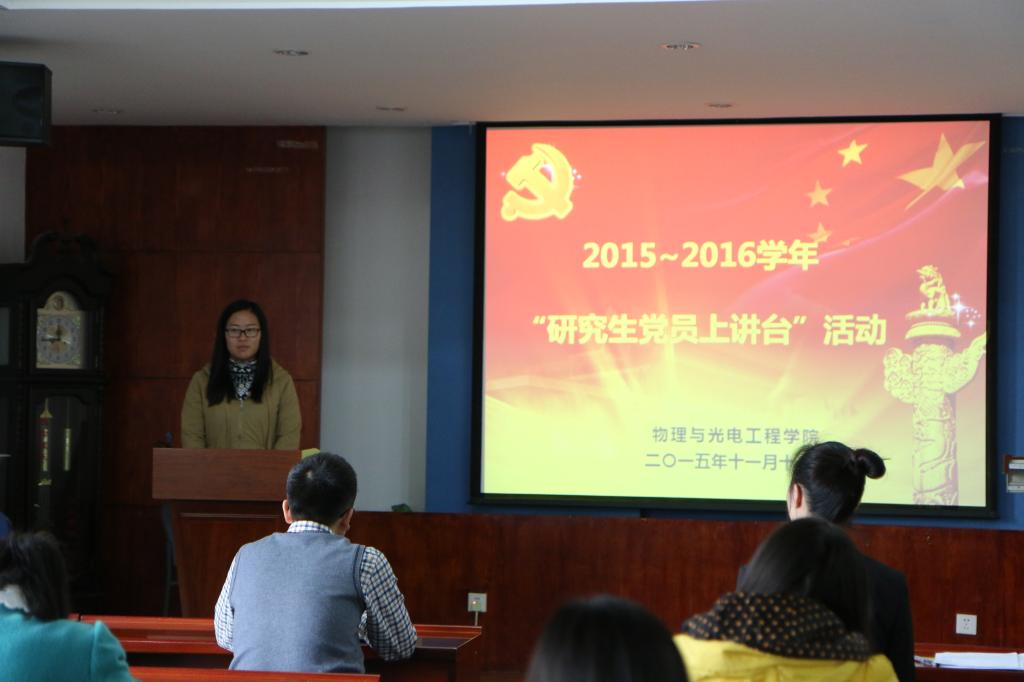 为纪念中国人民抗日战争暨世界反法西斯战争胜利70周年,弘扬伟大抗战精神,加强研究生新生党员的理想信念,积极践行社会主义核心价值观,激发其爱国热情,物理与光电工程学院研究生党总支精心策划了系列新生党员入学教育活动。