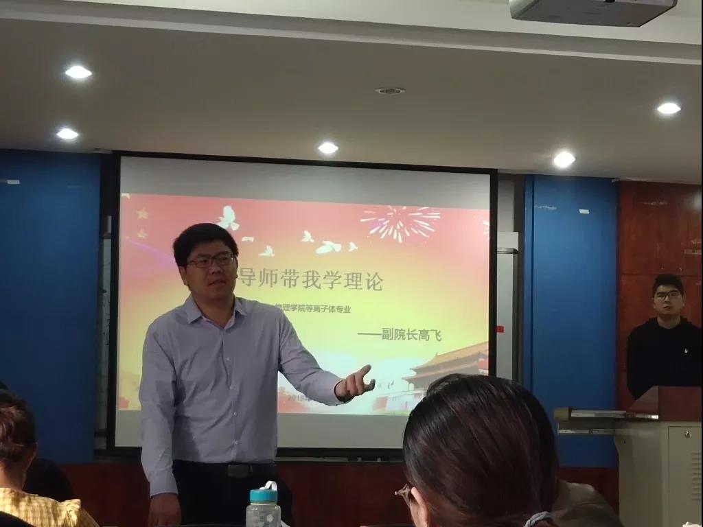 第二部分进行的是“导师带我学理论”主题教育活动,高飞老师由浅入深,结合等离子体物理学科自建设以来的发展历程与研究生自身成长成才的目标,有针对性地进行了阐述。在随后的互动和交流环节,与会党员以专业学习为重点,围绕初心与使命,纷纷提出自己的疑惑。其中,就“研究生阶段应以何种心态来进行学术科研?”这一问题,高飞老师解答道:“在科研过程中难免遇到坎坷和挫折,甚至很长一段时间毫无进展,但不要放弃,不要退缩,坚持下去,不忘初心,慢慢就会找到结果。”高飞老师强调,想要成为一名优秀的研究生,要具备批判性思维,失败并不可怕,要从失败中去汲取经验求取创新。