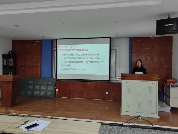 通过观看视频,全体党员对《中共中央关于党的百年奋斗重大成就和历史经验的决议》认识更加全面。随后,根据视频内容设置了十九届六中全会精神知识问答环节,问题包括党的十九届六中全会召开的时间及地点、党的历史上三个重要决议的通过时间、中国共产党的初心使命以及《中共中央关于党的百年奋斗重大成就和历史经验的决议》发出的号召等,全体同志积极参与,踊跃发言,郭杨喆同志、段怡凡同志、范艳晶同志、吕拓同志和饶奈同志等迅速而正确地回答出所提问题,知识问答环节有效加深了同志们对于《决议》精神的理解,巩固了学习成果。