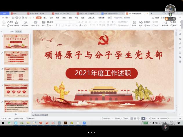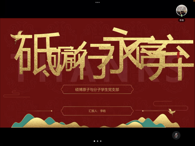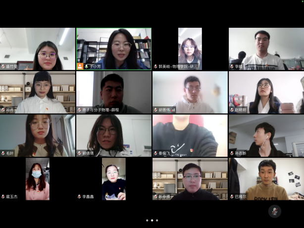 按照大连理工大学党委和乐鱼app官网党委的统一部署,硕博原子与分子学生党支部在严格落实疫情防控相关要求的基础上,于2022年3月16日下午,采取线上形式召开组织生活会。会议由支部书记于小芳同志主持,全体党员参加,化工学院党委副书记刘阅老师、乐鱼app官网副院长韩永昌教授到会指导。