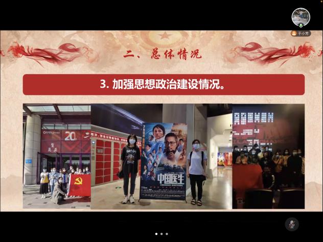 会议第二项,由党支部书记于小芳同志代表支部委员会述职。2021年,支部坚持以习近平新时代中国特色社会主义思想为指导,认真贯彻落实党的十九大和十九届六中全会精神,紧紧围绕抓好党建促团建,以党团建设促学风的指导思想,切实加强学生支部的组织建设、制度建设、作风建设、党风廉政建设。述职最后,于小芳同志向党员同志们汇报了查摆问题情况并提出整改措施。最后以网络匿名投票的方式进行了党支部委员会民主评议测评。