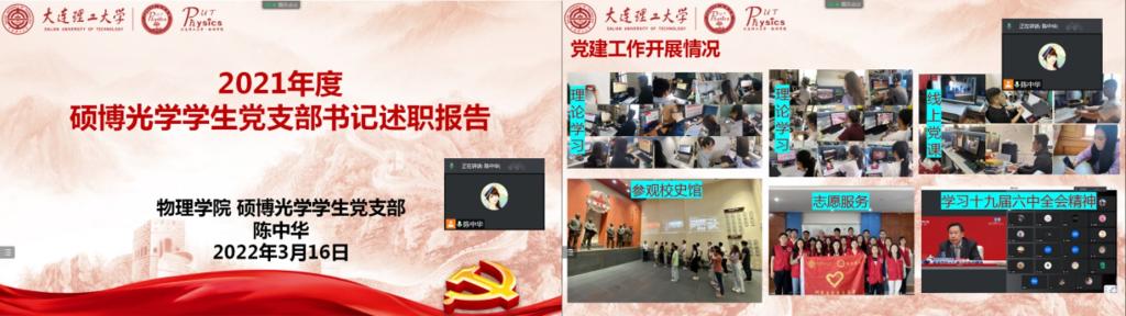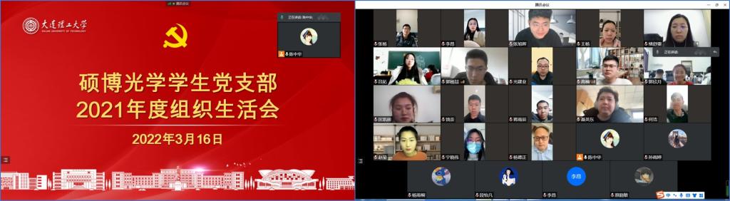 按照大连理工大学党委和乐鱼app官网党委的统一部署,结合学校疫情防控相关要求,乐鱼app官网硕博光学学生党支部于2022年3月16日下午,通过腾讯会议线上召开2021年度组织生活会。会议由支部书记陈中华同志主持,全体党员参加,乐鱼app官网副院长杨德正教授列席指导。