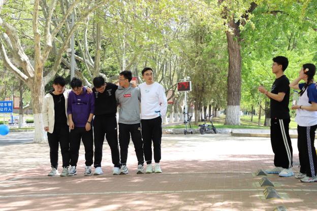 每位参数队员的腿上各系上三个气球,在五分钟之内互相踩对面小组的气球。剩余气球数量多的队伍获胜。同学们默契配合,场下观众加油助威,现场其乐融融。