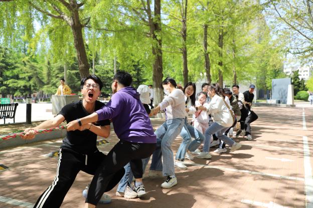 将五个队伍分成两大队进行PK,随着一声令下,拔河比赛正式开始。队员们摩拳擦掌,齐心协力,发动全身力量,赛场上气氛热烈,呼声练练。