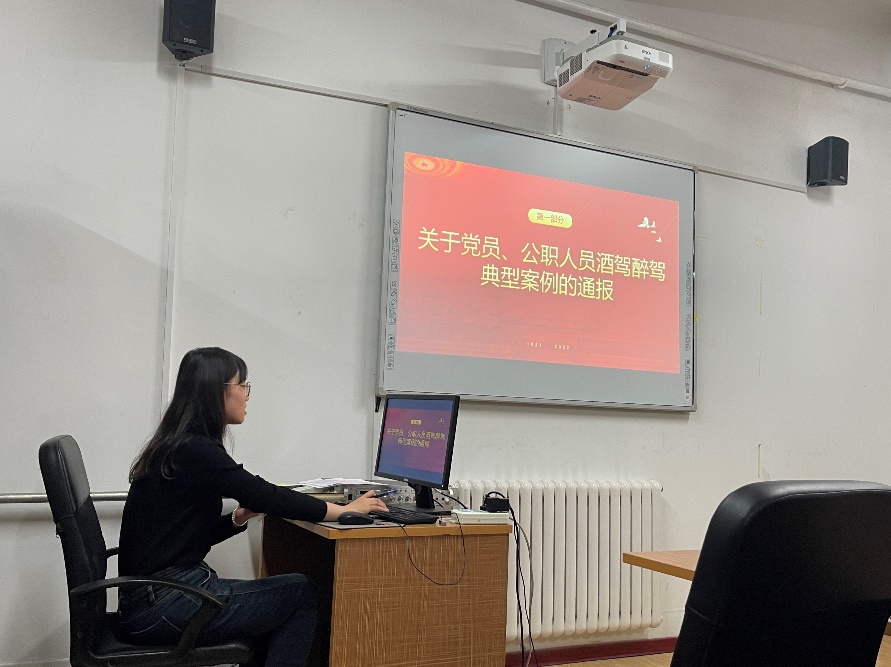 会议第三项,由支部书记段蒙悦同志带领大家进行有关党员、公职人员酒驾醉驾典型案例的警示学习,强调对于违法犯罪党员的纪律处分。提醒党员同志要从中吸取深刻教训,充分认识到酒驾、醉驾的严重性,本着对自己、对组织、对社会负责的态度加强自我约束,远离酒驾醉驾。