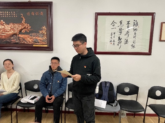 会议第一项,支部书记段蒙悦同志对党支部基本情况进行报告,并代表党支部向2022级新成员的加入表示热烈的欢迎。黄实中、王鹏宇两名新生党员依次进行了自我介绍,表达了对于加入党支部的兴奋之情。