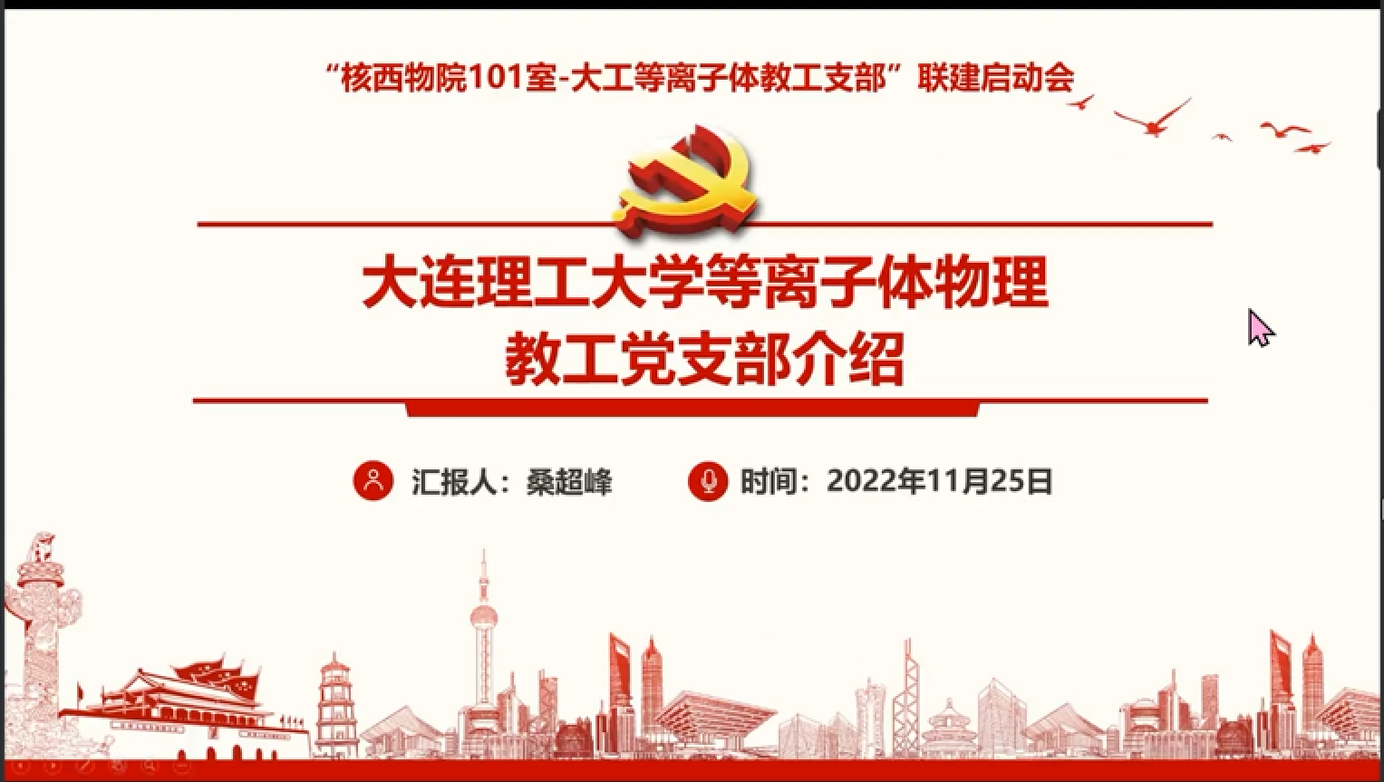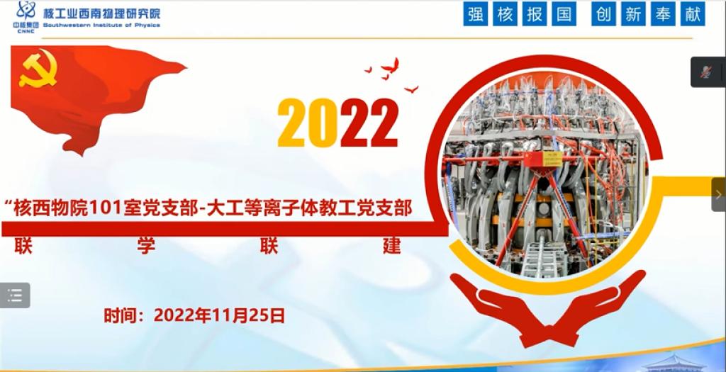 为学习宣传党的二十大精神,贯彻实施科教兴国战略、人才强国战略、创新驱动发展战略,推进学校“一融双高”和双一流建设加速跑,融合党建与学科建设,共促进同发展。11月25日中午乐鱼app官网等离子体物理教工党支部与核工业西南物理研究院等离子体理论和模拟研究室党支部(以下简称101室党支部)联合召开共建启动会,会议通过线上线下结合方式进行,双方支部全体党员参加会议。