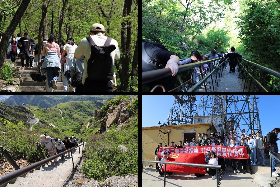 活动四:弘扬五四精神,青春勇于攀登。当代青年不仅要在理论学习上丰富自己,同时还要有强壮的体魄。为提高党团员身体素质,不断丰富党团员组织生活,在汗水中锻炼身体,磨炼意志,锤炼党性,硕博等离子体第二学生党支部、硕博等离子体第三和第四学生团支部组织开展了大黑山登山活动。活动中,各位同志以坚持不懈的态度登上了主峰,检验了我们大工物理学子报效祖国的强健体魄。登顶后,硕博等离子体第二学生党支部副书记翟文远带领大家重温了五四精神。