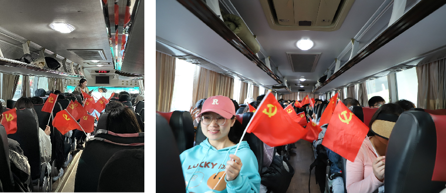 活动五:青春主旋律,红歌唱给党。以诗诵情,以歌咏志,为展现大工物理学子昂扬奋发的精神面貌和矢志不渝的家国情怀。返回途中,同学们的热情仍未散去,硕博等离子体第三学生团支部书记唐雯带领大家唱红歌。通过唱歌的方式,感受我党百年来的光辉历程和取得的重大成就。伴随着“五星红旗迎风飘扬,胜利歌声多么响亮...”“没有共产党就没有新中国,共产党辛劳为民族,共产党他一心救中国...”一首首嘹亮的歌声,我们圆满结束了此次活动。