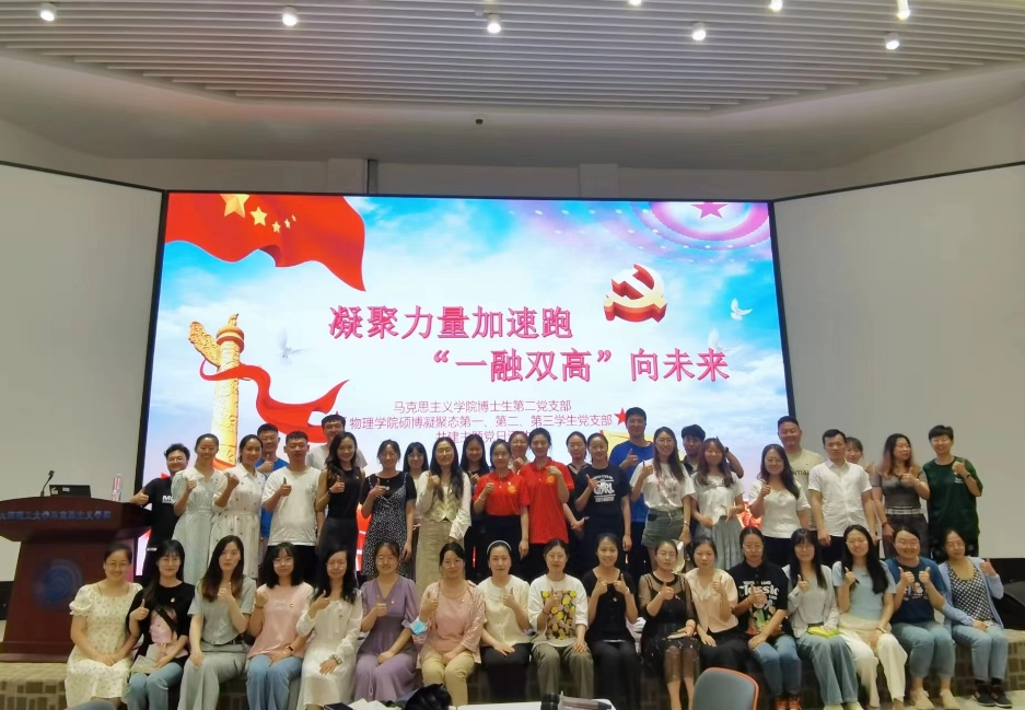 为热烈庆祝中国共产党成立102周年,深入推进学习贯彻习近平新时代中国特色社会主义思想主题教育,扎实推动学校“一融双高”建设,6月28日上午,乐鱼app官网硕博凝聚态第一、第二、第三学生党支部联合马克思主义学院博士生第二党支部于马克思主义学院情景教室开展以“凝聚力量加速跑 一融双高向未来”为主题的党日活动。