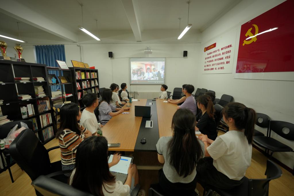 活动开始前,全体到会学生一同收看了2023年高校党组织示范微党课展播第2讲--“铸魂增智育新人,正风促干书新篇”。同学们全神贯注、认真聆听,观后表示要继续加强学习、努力科研,练就过硬本领,深入学习党的二十大精神,用习近平新时代中国特色社会主义思想武装头脑,以实际行动践行初心使命。