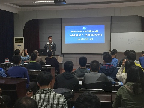 10月14日晚,物理与光电工程学院“明星寝室”建设结项评比在系楼418顺利进行,党委组织员兼学生工作办公室主任李一鸣,2012级辅导员佟西原,2014级辅导员梁勇,2015级辅导员纪丹红担任本次评比的嘉宾。