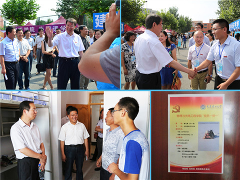 学院8月31日的迎新工作仍然从凌晨5时开始,合理的值班安排与充分的休息,让学院每一位迎新工作者都保持着热情与活力,继续齐心合力为新生同学送上最真挚的迎接与问候。上午9时半,校党委书记魏小鹏教授、学院院长赵明山教授等各级领导分别在不同时段来到学院各迎新工作点进行亲切地视察慰问,期间充分肯定了学院迎新工作者的辛勤与奉献,振奋了学院所有迎新工作者的士气与精神。学院院长赵明山教授带领学院领导班子先后对学院本科新生寝室进行了走访,为家庭经济困难的新生代表授予“80级校友奖助学金”,在与新生及家长的面对面交流中,赵明山院长表示学生应学会自立自强,树立远大志向,祝愿新生通过自己的奋斗,成为理工交融、全面发展的创新型人才;此外,赵明山教授也对学院多年以来长期开展的“党员一帮一”工作进行指导,提出了宝贵的建议与意见。