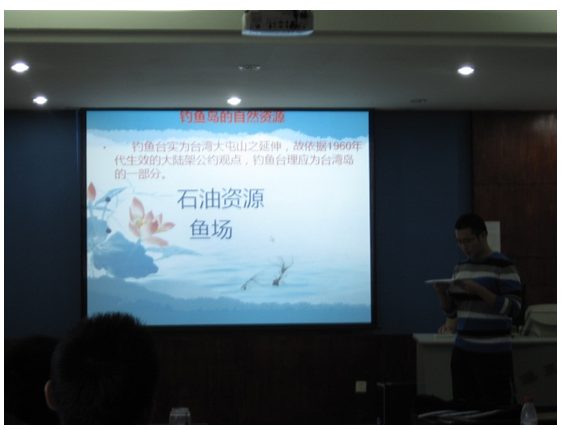 2012年10月28日12点,物理与光电工程学院本09党支部于物理系楼322成功举办了党支部创新立项方案之“时事大家谈—钓鱼岛事件”主题学习活动。参与人员为物理与光电工程学院09级辅导员纪丹红老师以及本09党支部成员和各位积极分子。本次组织生活会以钓鱼岛事件为主题,由本09党支部成员孙汉联担当主讲,他带领同学们回顾钓鱼岛的历史背景,对九月中发生的购岛风波,和中国如何应对与解决钓鱼岛事件进行剖析。