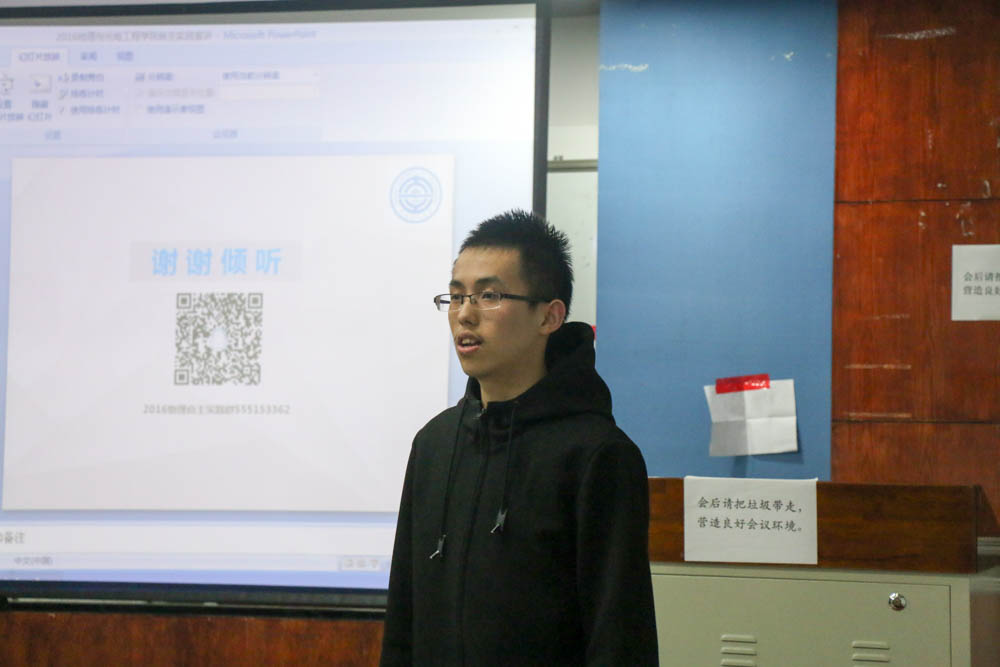 2016年11月8日,物理与光电工程学院自主实践宣讲会于物理系楼322室圆满召开。团委常务副书记刘婉莹,组织部部长邹艳慧,青年志愿者协会会长王昊,实践部部长李哲出席此次宣讲会。本次宣讲会分为自主实践介绍和答疑两个环节。