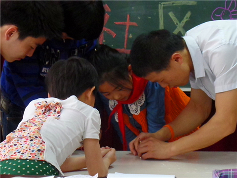 来到小学课堂,管理员对实践队的到来表示欢迎。教室里,孩子们正在安静地看书。一见到陌生的哥哥姐姐们,几个调皮的孩子忍不住凑上前来,向哥哥姐姐们问好,教室的气氛立刻活跃起来了。
