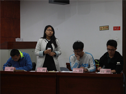 418日下午,由物理与光电工程学院主办的四院辩论赛第一场在物理系楼322顺利举办,我院辩论队作为反方与正方建设工程学院辩论队在此展开了精彩激烈的唇枪舌战。本场辩论赛的评委嘉宾有机械工程学院辩论队队长赵世鹏、材料科学与工程学院辩论队队长冯雪及优秀辩手齐赫扬。