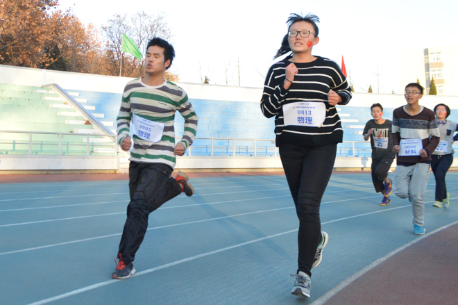 发令枪响,所有同学齐头并进,互不相让。但随着时间推移,逐渐分为了几个梯队,而物理的同学们则始终紧跟第一梯队,不让任何一名队员掉队。第一名到达的物理队员何浩,仅仅用时13分左右就完成了近4000米的路程,而后大部分队员也都紧跟着到达终点,其中赵秀丽夺得学院组女子第三。