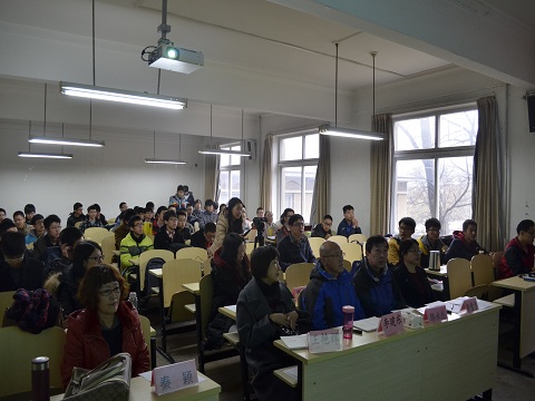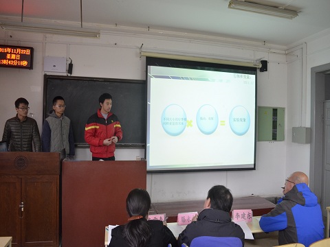 答辩过程中各小组成员默契配合,分工协作,通过PPT等形式展示他们所获得的丰富成果。简陋的自创实验仪器,纷繁而又浸透着汗水的数据和图表,抵挡不住思维风暴的层层展开,有些青涩但又厚重的研究成果给各位评委老师和观众留下了深刻的印象。提问环节中,评委老师针对各队的情况提出了专业而又有建设性的问题,既起到了与答辩队员相互交流的作用,又对比赛队伍的下一步工作有重要的启发意义。材料馆212、213教室充满了浓郁的学术氛围。