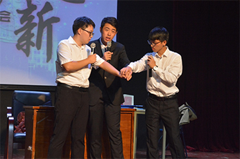 代班长、军训教官和导员们的采访视频使大家了解到不同角色对17级新生的期许和祝福;令人耳目一新的互动游戏让全场师生都参与进来。晚会中有感动、有欢乐、各种情感交织在一起,绘成一幅精彩的画卷。话剧《广告双子星》表演诙谐幽默,语言古灵精怪,在演员们夸张而富有感情的表演中展现出职场竞争中的浓浓兄弟情,凸显了团结合作的重要性,将晚会推向高潮。