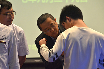 典礼中学院领导和老师们为新生代表佩戴校徽,小小的校徽蕴含着重大的意义,这意味着每一名新生都已成为一名真正的大工物理学子。
