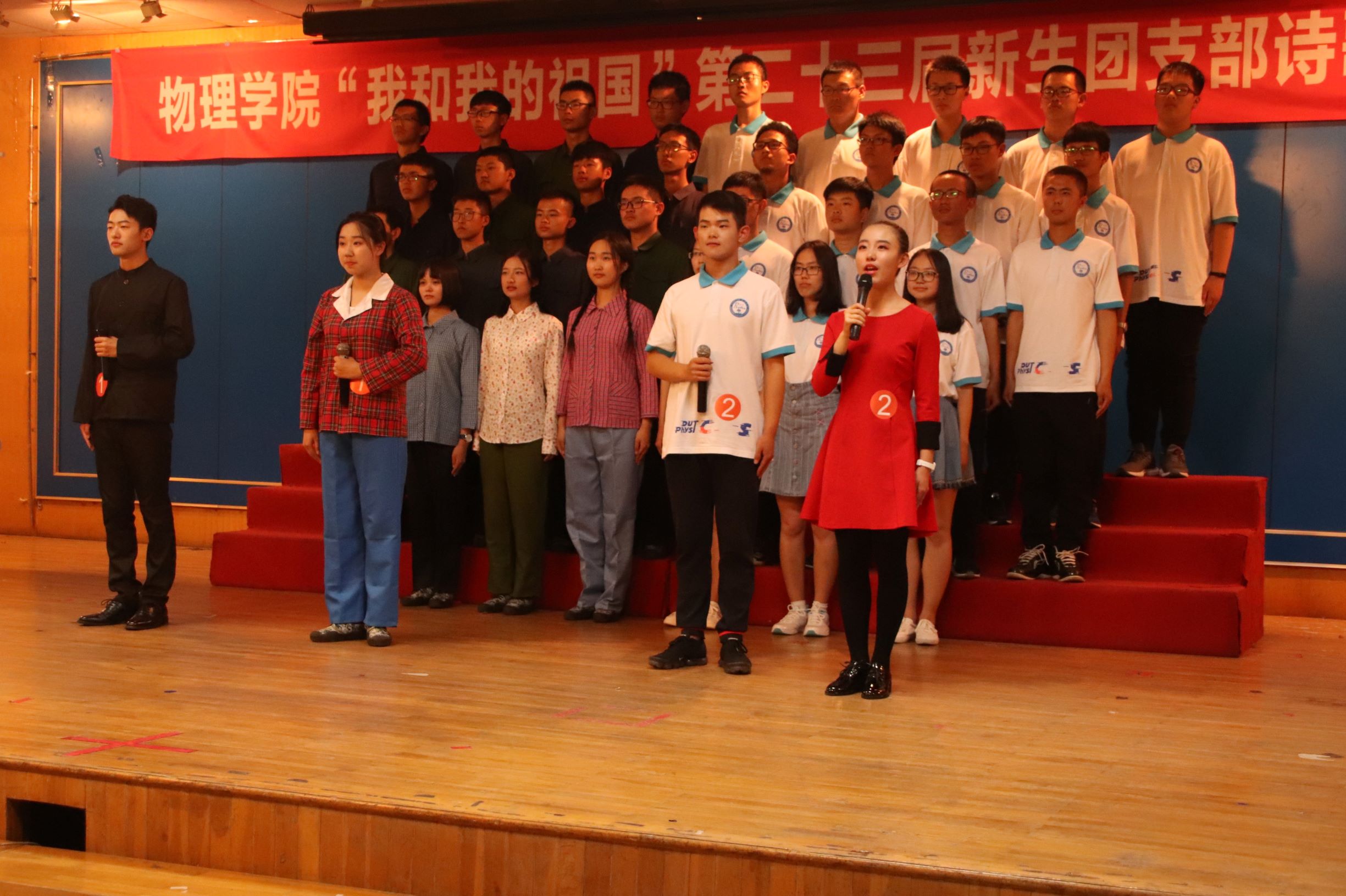 为深入学习贯彻习近平新时代中国特色社会主义思想和党的十九大精神,引导物理学子培养爱国荣校情怀,自觉传承和践行大工红色基因,切实提升团支部的凝聚力、战斗力,营造喜迎建校 70 周年的文化氛围,2018年9月12日晚,乐鱼app官网“我和我的祖国”第二十三届新生团支部诗歌朗诵比赛在大学生活动中心华为厅成功举办。