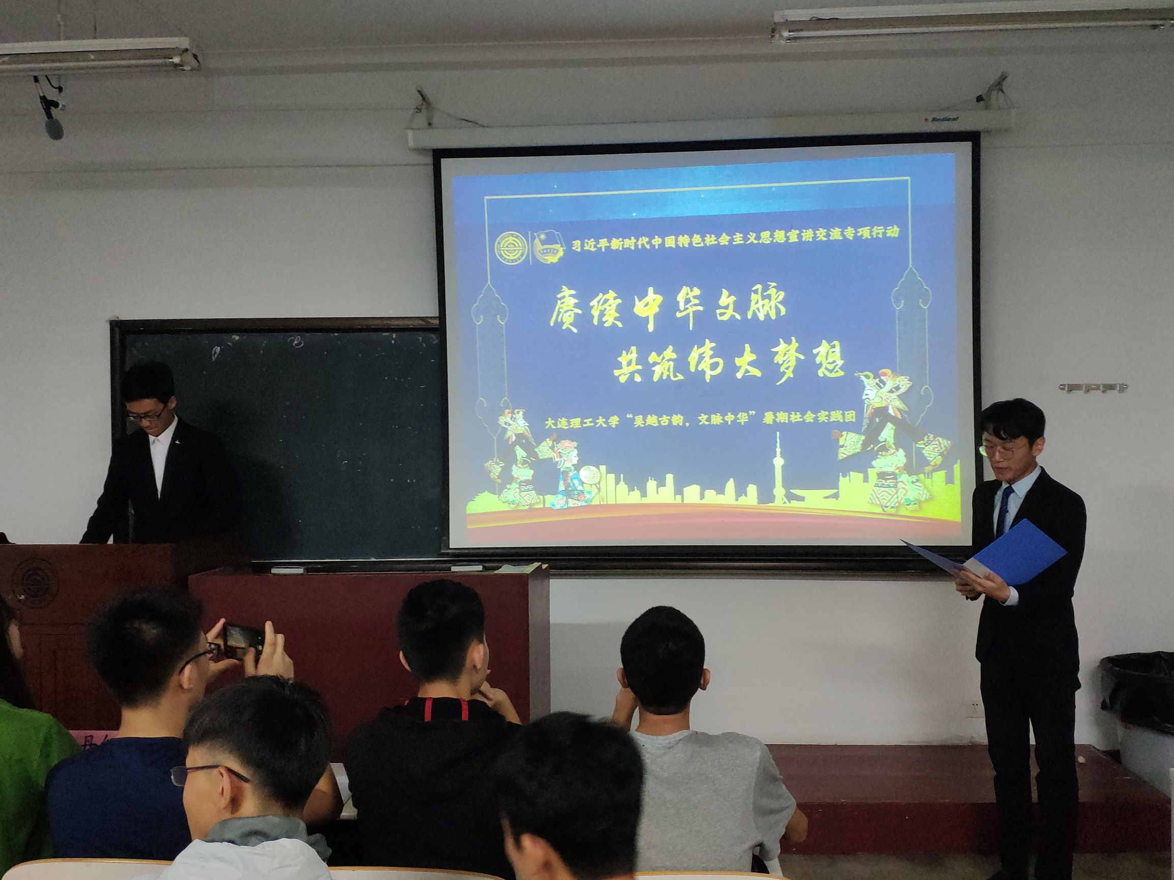 之后各支答辩队伍依次上台进行答辩。本次暑期社会实践总计有21支队伍完成结项,其中有5支队伍奔赴大连市外地进行实践,媒体报道多达45篇。实践的形式多种多样,实地调研、社区宣传、网络调研,创意新颖。实践围绕“传承大工红色基因,寻访老校友”、“美丽中国行”等多个主题进行,内容丰富多彩。