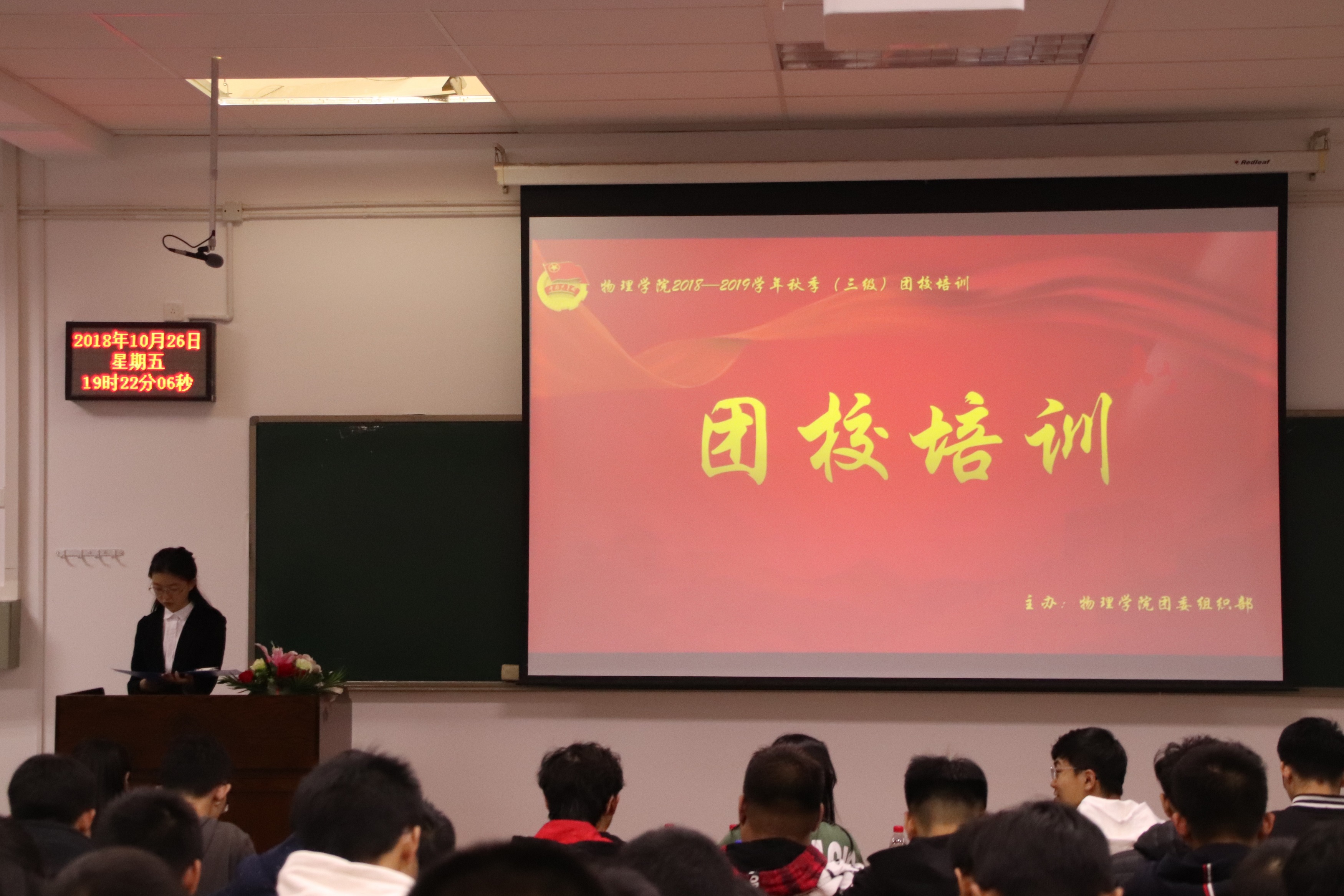 乐鱼app官网2018-2019学年第二次团校培训于10月26日晚6点30分在综合教学二号楼B303教室准时开展。