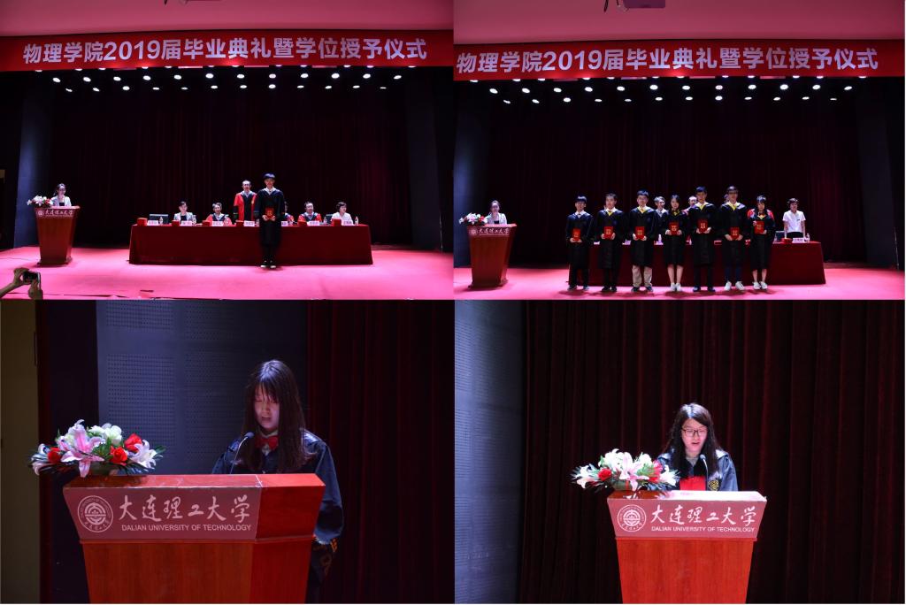 又是一年的毕业季,又一届物院学子即将离开校园,踏上崭新的人生旅途。6月20日下午2点,乐鱼app官网2019届毕业典礼暨学位授予仪式在综合教学二号楼B301百川报告厅成功举行。到场的嘉宾有乐鱼app官网院长、博士生导师赵纪军教授,学院党委书记、博士生导师王正汹教授,副院长、博士生导师陈茂笃教授,副院长、博士生导师于长水教授,副书记兼副院长、纪委书记杨木老师,副书记兼副院长于艳敏老师,学生办主任兼团委书记纪丹红老师,组织员兼2016级辅导员佟西原老师,研究生辅导员张弛老师,2018级辅导员杨帅兵老师,以及15级所有本科、硕士、博士毕业生和部分学生家长。