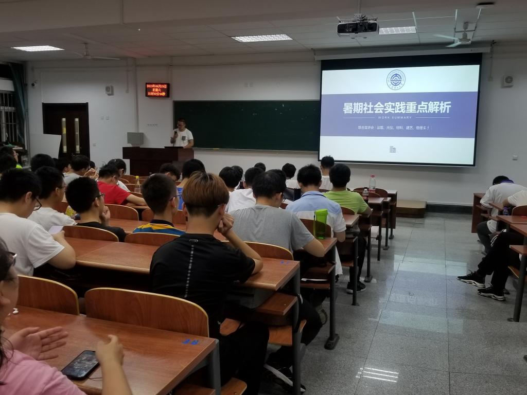 回望峥嵘岁月,感受新中国成立70周年取得的巨大成就。为帮助同学们顺利开展社会实践,把红色基因融入暑假实践,材料科学与工程学院、光电工程与仪器科学学院、建筑与艺术学院、乐鱼app官网、运载工程与力学学部于2019年6月29日下午9点,在综合教学一号楼B103教室联合举办暑假实践宣讲会。乐鱼app官网的团委书记纪丹红老师为本次会议的邀请嘉宾。