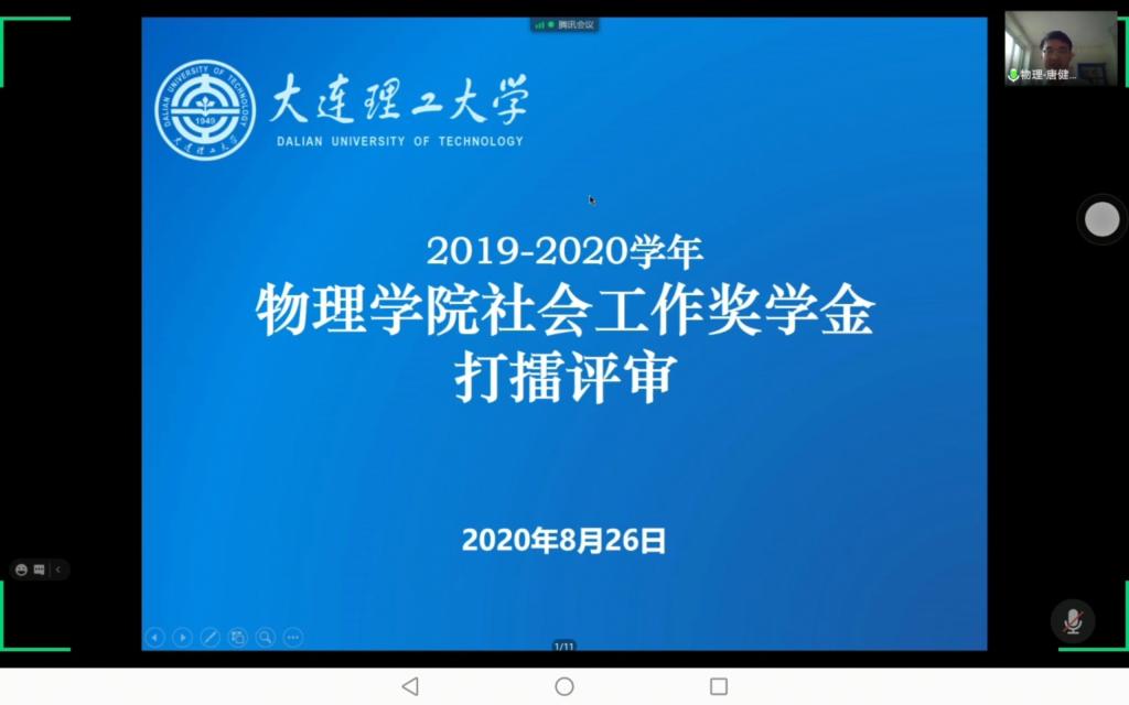 2020年8月26日上午9时,乐鱼app官网社会工作奖学金线上答辩会顺利举办。出席本次会议担任评委的嘉宾有:物应1901班思政班主任、体育场馆中心主任张磊老师,乐鱼app官网党委副书记、副院长、纪委书记周福良老师,物大珩1801班专业班主任、大学物理教学中心副教授于杰老师,物大珩1801班思政班主任、学校宣传部网络宣传科科长许剑老师,物应1801班专业班主任、纳米光电技术研究所副教授荆振国老师,物应1801班思政班主任、学校宣传部理论宣传科科长牟霖老师,物应1901班专业班主任、凝聚态物理研究所副研究员周思老师,学院学生工作办公室主任、18、19级辅导员纪丹红老师。17级辅导员唐健璐老师担任本次线上答辩会主持人。